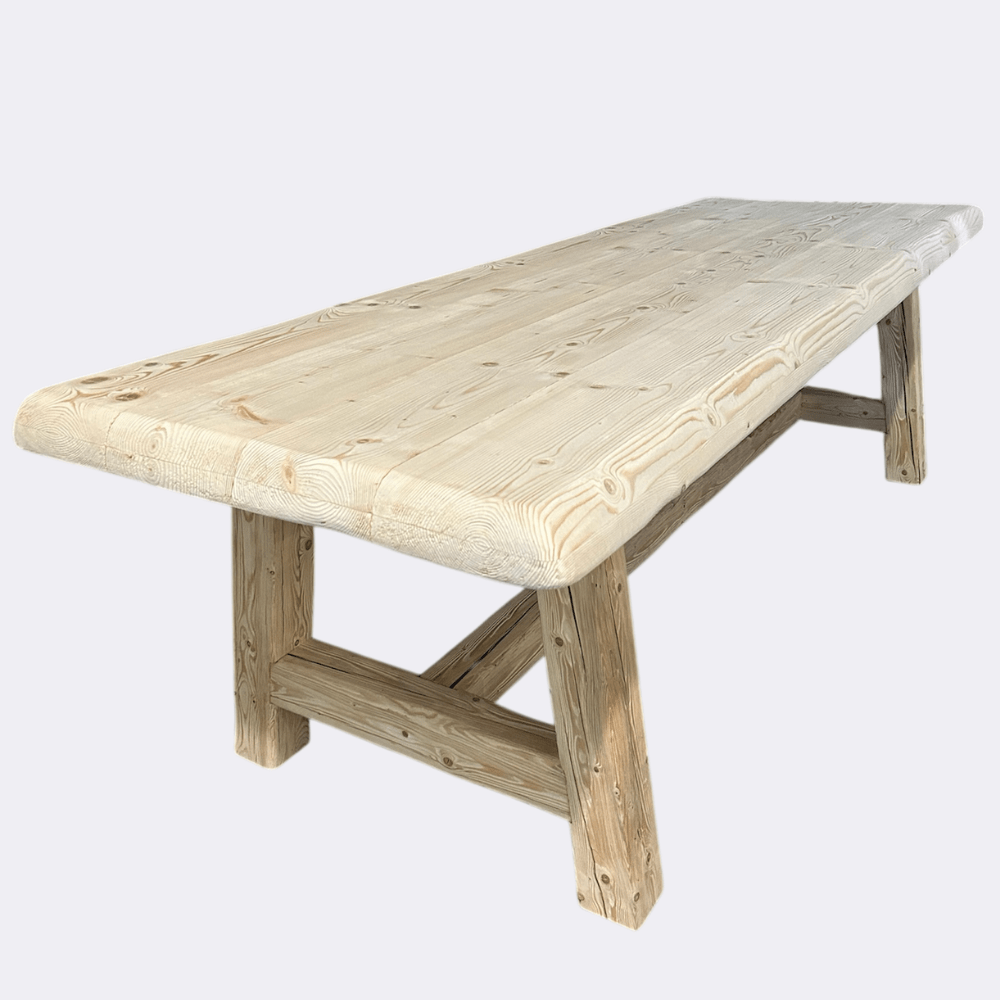 Η λιτή αλλά στιβαρή γραμμή του τραπεζιού αναδεικνύει την αυθεντικότητα της παραδοσιακής κατασκευής. Το φυσικό φινίρισμα του ξύλου προσφέρει μια αίσθηση ζεστασιάς και θαλπωρής, καθιστώντας το τραπέζι ιδανικό για οικογενειακές συγκεντρώσεις, τραπεζαρίες ή επαγγελματικούς χώρους που θέλουν να αποπνέουν φιλόξενο χαρακτήρα.